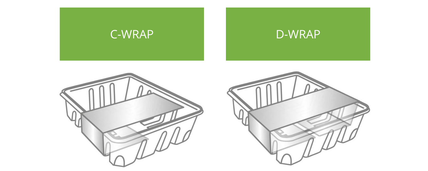 Uno de los formatos más utilizados en el etiquetado linerless para platos para llevar, take-away, delivery y precocinados, tanto en recetas tradicionales, como en ensaladas y combinados de verdura y furta, es el C Wrap o “formato C”, una etiqueta adhesiva sin papel soporte que envuelve la parte frontal, lateral y posterior; o el “formado D”, una faja adhesiva para todos aquellos productos que necesitan más superficie de información.